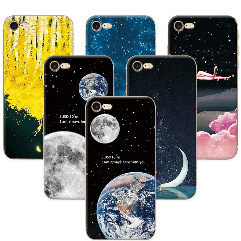 Soft Tpu Silicone for iphone 7 Couple Style Phone Case Space Stars For Apple iphone 7 4.7" Back Covers For Coque iphone 7